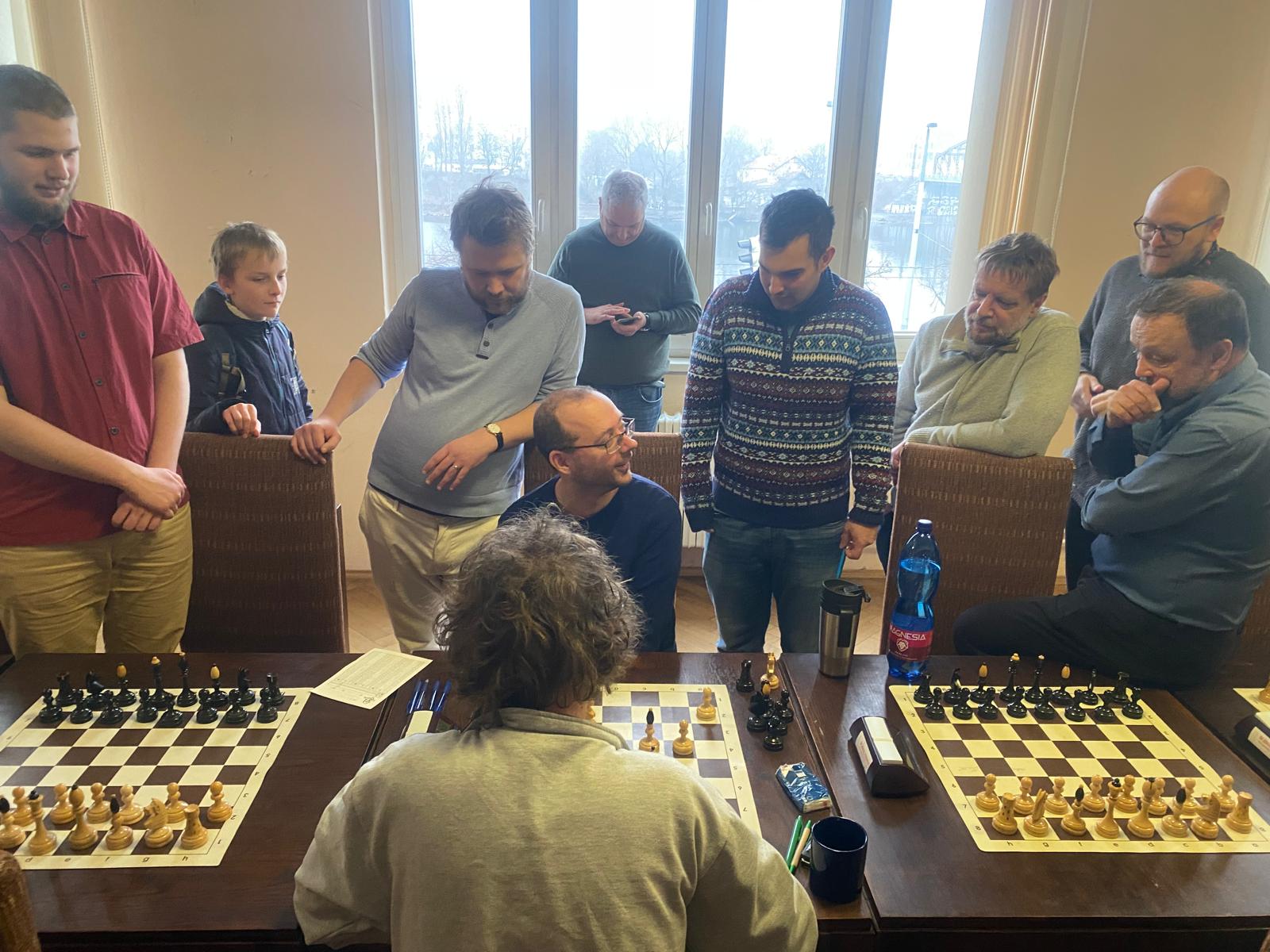 V neděli bylo odstartováno 7. kolo 2. ligy. Náš tým odjížděl za družstvem ŠK Sokol Vyšehrad "A". Jedna část týmu vyrazila brzo z Německa a byla v Praze o 40 minut dříve než naše "teplické" auto. Malé zdržení (12. minut - doprava v Praze) bylo na místě vyřešeno dohodou a v cca 10:15 mohl zápas začít. Náš tým se před tímto kolem nepohyboval ještě v sestupových vodách tabulky, ale cílem byla nejhůře remíza se třetím družstvem v průběžného pořadí. Zákulisně byla cítit nervozita, domácí chtějí "atakovat" první příčky této soutěže a náš tým sahal v jednu chvilku po možné výhře. Pojďme se podívat na samotný zápas. Rychlou remízou odstartoval sérii na 6. šachovnici Lukáš Lieber. Zde jsem si myslel, že Luky zabojuje, přeci jen soupeř s ELO 2087 je hratelný. Partii jsem neviděl, ale Luky odehrál v minulých kolech dlouhé a bojovné partie, tak uvidíme příště. V cca 11:00 hodin se v sokolovně rozezněla hudba a začal domácí basket juniorů za podpory maminek. V této době si poradil Henrik Teske s domácím Pavlem Vávrou. Henrik odstartoval svou výhrou "naději" na možný dobrý výsledek pro náš tým. Na 7. šachovnici se podařil husarský kousek Ondrovi Studničkovi, který nabídl v dobré pozici FM Janu Svatošovi remízu, který ji po konzultaci s kapitánem přijal. Další remíza (zasloužená) vedla v partii Serrano-Wong. Gengchun s tímto nebezpečným hráčem remizoval...zde jsem byl jako kapitán také spokojen. Velmi dobrou šanci na výhru si vytvořil David Peglau proti Andreji Hollému (4. šachovnice). Partie se mi líbila, David ve střední hře připravil soupeře o pěšce a měl to delší dobu lepší. Bohužel jsem neviděl konec partie, kdy si soupeři podepsali remis. Velmi dobře partii rozehrál zaskakující kapitán týmu na poslední 8. šachovnici Milan Maščák proti Matěji Vernerovi. Soupeře ve střední hře přehrál a získal materiální převahu. Bohužel v dámské koncovce a středních figur prohodil tahy a musel se vzdát před nekrytelným matem. Tato prohra stála náš tým minimálně remis v celém zápasu. Následně v remizoval na 2. šachovnici Honza Václavík. Poslední partii dohrával Vašek Paulus s Janem Dočekalem. Vašek přehlédl taktický obrat a možnou výhru, minul také možnost opakování tahů a nakonec partii bohužel prohrál. Tým Teplice Chess Club odjížděl z Prahy bez bodu. Těsným výsledkem a prohrou 4:5-3:5 jsme nyní na 10. místě celkového pořadí. V posledních čtyřech kolech budeme muset zabojovat o udržení v této soutěži. Držte nám palce!